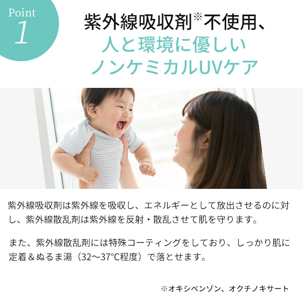 1.紫外線吸収剤不使用。人と環境にやさしいノンケミカルUVケア。
