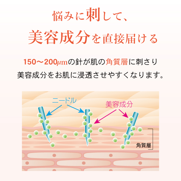 微細な針「スピキュール(マイクロニードル)」が肌に直接刺さることで、美容成分を肌内部※に直接届けます!塗るだけ、自宅でエステ級のエイジングケできます。