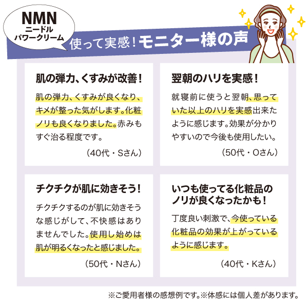 話題の美容商品、塗る美容針【NMN(エヌエムエヌ)ニードルパワークリーム 30g】モニター様を20名募集いたします!