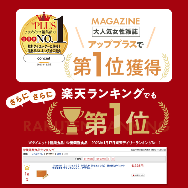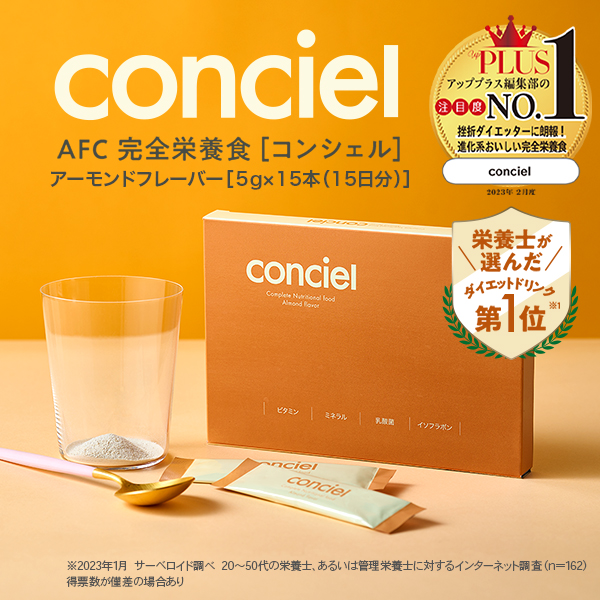 concielは厳選された素材を使い、日本の自社工場で製造した1本で1食分のビタミン・ミネラルを摂ることができるアーモンド風味の完全栄養食。100 億個の乳酸菌・イソフラボン・ソイプロテイン・9種の必須アミノ酸(EAA)などの栄養素も同時補給で健康的な体作りをサポート。また注目のダイエットサポート成分イヌリン・アフリカマンゴノキエキス・ブラックジンジャーも配合しました!