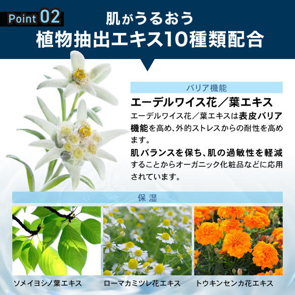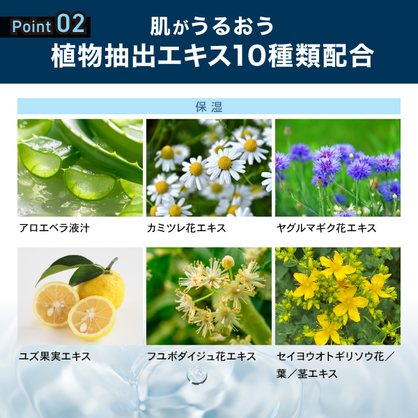 洗い上がりのお肌の水分をしっかりと保持し、やわらかく潤いに満ちたお肌へ導きます。