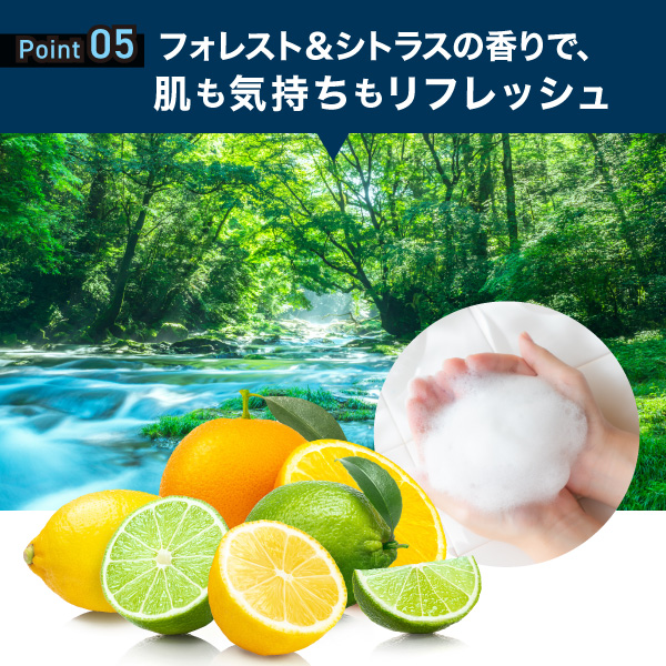 天然製油のみ使用の「フォレスト&シトラスの香り」で、リフレッシュさせます。