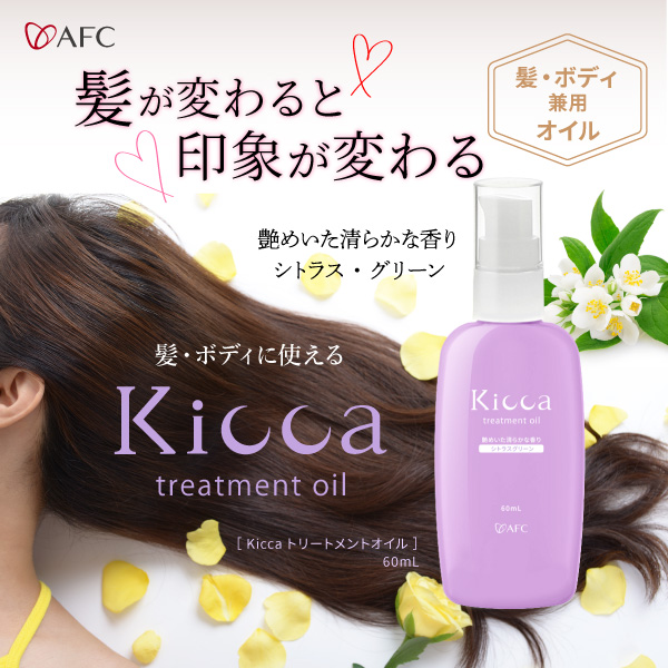 #AFC #エーエフシー #Kicca #キッカ #ヘアオイル #ボディケア #ヘアケア #トリートメントオイル #トリートメント #髮 #保湿 #全身保湿 #植物オイル #パラベン不使用 #合成着色料不使用 #防腐剤不使用 #アルコール無添加 #鉱物油不使用