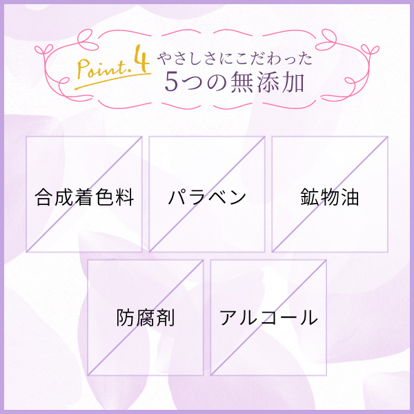 またやさしさにこだわった5つの無添加で心地よくお使いいただけます。(※2)