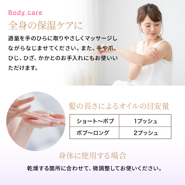 髪をはじめ、カラダにも使えるトリートメントオイル。