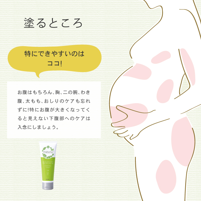 「mitete マタニティクリーム」は女性の声から生まれた女性にやさしいクリーム。