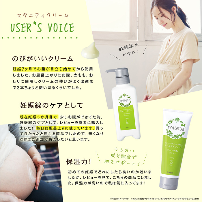 mitete マタニティクリームはサラッとしてベタつかずのびがいいです!塗ってすぐ服を着ても平気!