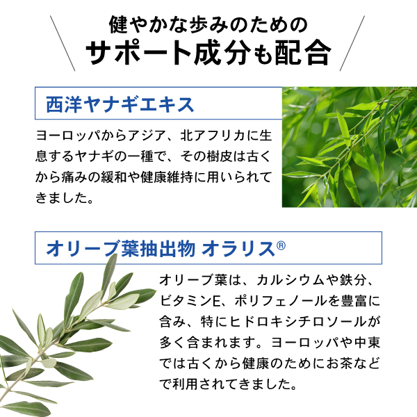 さらに、健やかな歩みのためのサポート成分「西洋ヤナギエキス」