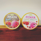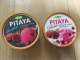 ピタヤ&3種のベリーとほのかなミントが爽やかですっきとした味のシャーベットとピタヤとミルクがマッチしたマイルドな味わいのミルクジェラートをセット!