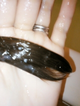 ・トリートメントを適量、手に取り、頭皮になるべく付かないように、両手の平で髪を挟むようにして、トリートメントを馴染ませます。