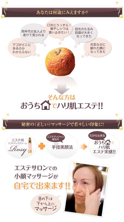 『年齢を感じさせない美肌への道。即効リフトアップ「ROSY」。AGOS化粧品』