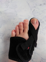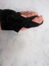 親指を外側に広げ外反母趾が矯正されるように手伝います。