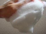 「紙ふぶき」:ツバキ油、水、パーム油、ヤシ油、水酸化Na、シア脂、ホホバ種子油、オリーブ油、アイエキス、香料(ラベンダー油、ビャクダン油、パチョリ油)