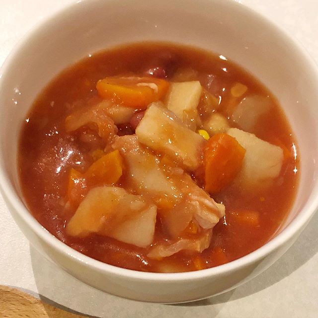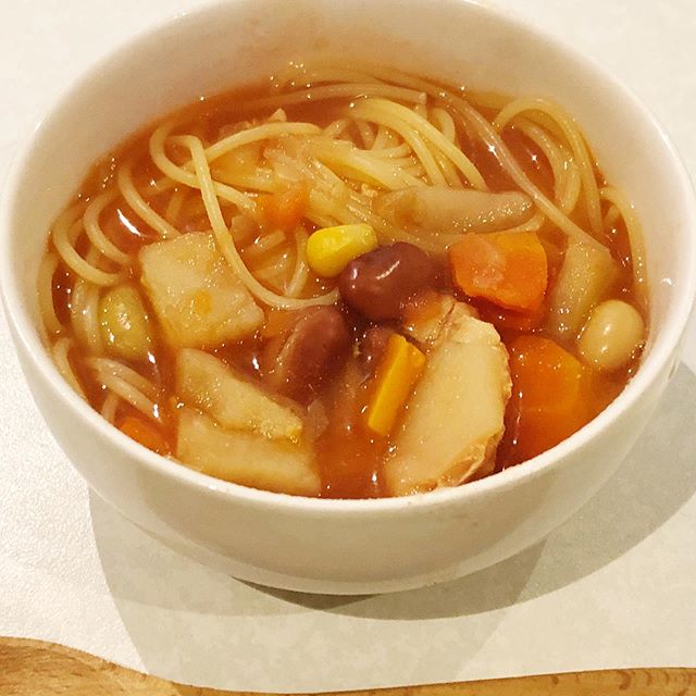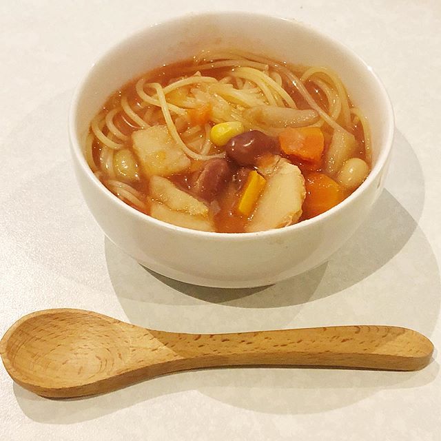 . . 鶏肉とお豆のごろっとおかずミネストローネ 鶏肉とお豆と野菜の11種具材がたっぷり!1食83kcal で糖質10.6g! ●内容量/160g×2 このままでも十分美味しいミネストローネですが 今日はスープパスタにアレンジしました! 茹でたパスタをお皿にいれ、そこに 鶏肉とお豆のごろっとおかずミネストローネも入れて レンジでチン! 具沢山で嬉しいミネストローネスープパスタに大変身! ヘルシーなので朝はもちろん 小腹が空いたおやつにもよし◎ トマトの優しい甘味とたくさんの野菜と鶏肉の旨味が スープになっていて、ほっこりする美味しさ! パスタにもよく合う!ご飯を入れてリゾットもいい! 特に鶏肉とじゃがいもと豆が美味しい! スープは大量に作って食べきれず余ってしまったり するけどレトルトスープならいつでもこの美味しさが 食べれて便利! ごちそうさまでしたー #ごろっとおかずミネストローネ #糖質制限ダイエット #カロリー制限 #ダイエットママ #ダイエットごはん #monipla #aikei1_fan #アイケイ #簡単ご飯 #おかずスープ #パスタスープ #トマト #ミネストローネ @ikomotenashi https://www.lowcalo.com/soup/item2738200406