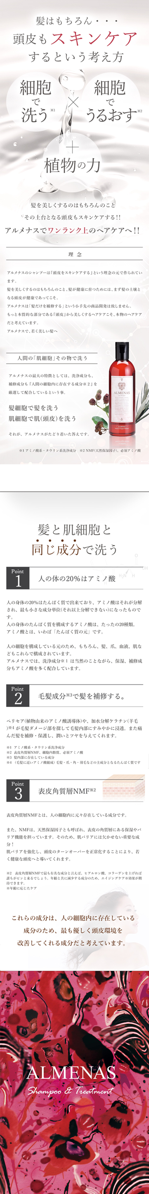 頭皮をケアするシャンプー「アルメナス」を宜しくお願い致します。