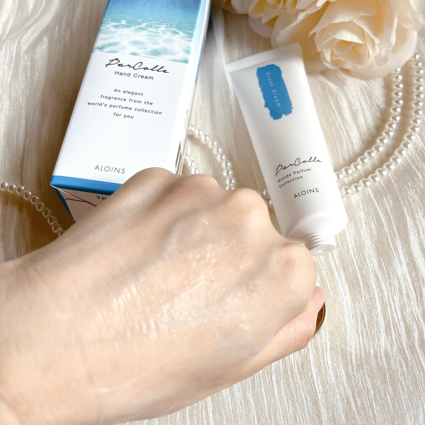 𓈒𓏸┈┈┈┈┈┈✾┈┈┈┈┈┈𓏸𓈒 パルコレ ハンドクリーム OB(オーシャンブルーム) 香水のように香るハンドクリーム 伸びがよくサラリとしたテクスチャーで ベタつかないしっとりとした塗り心地 手に伸ばした瞬間から、ほんのり甘いフローラルと ムスクの香りがします 甘い爽やかな香りは長続きするので 香水のようにいい香りがして心地よいです 5種の植物オイル(保湿)と 3種の美容保湿成分、肌あれ防止成分 を配合しているのでしっとりハンドケアしながら 良い香りに包まれます♡ サイズも持ち運びにもちょうど良いサイズなので バックやポーチに入れてお出かけ先でも 使いやすいです♬.*゚ #PR #アロインス #パルコレ #香水 #ハンドクリーム #ハンドケア #オーシャンブルームの香り #monipla #aloins_fan