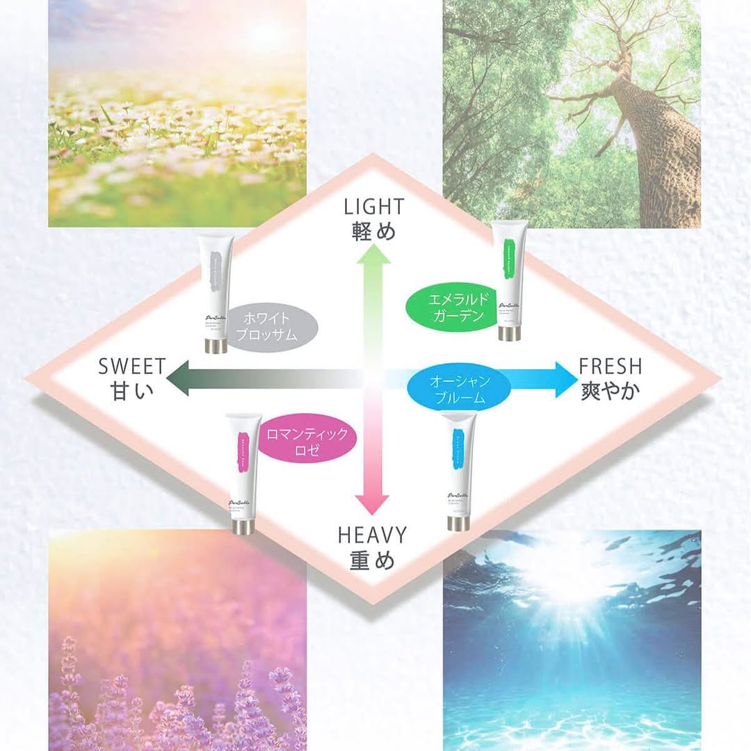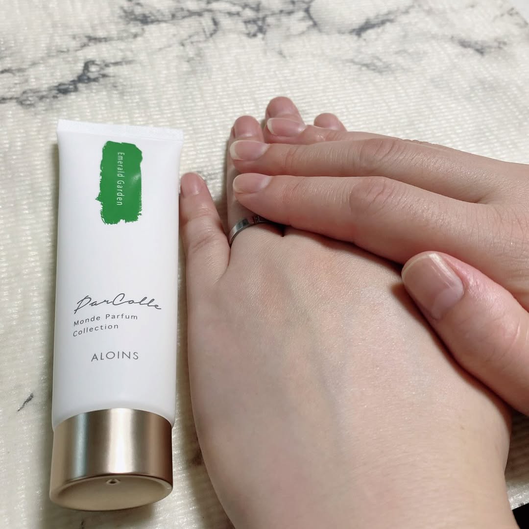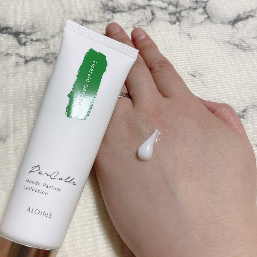 香水のようなハンドクリーム ~憧れのあの香りでハンドケア~ 手肌にすばやくなじみ、しっとりしてベタつかない。 角質層まで浸透し、みずみずしい手肌へ。 スムースパウダー配合により、日中にも使いやすいすべすべさらさらの使用感! エメラルドガーデンの香り ~雄大な大地と木々に温かく包み込まれるような木漏れ日の香り~