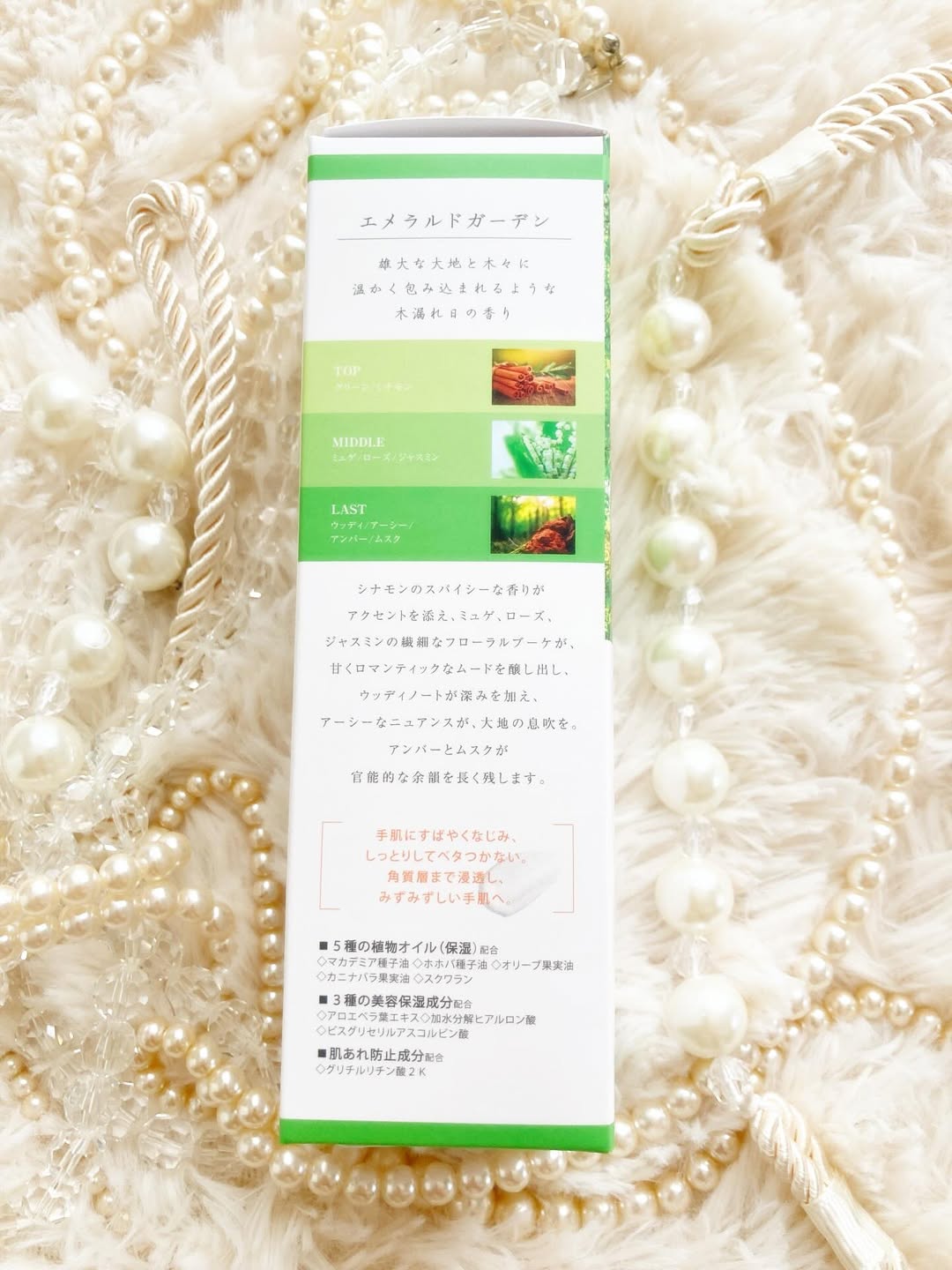 ハンドクリームを塗った指先からエメラルドガーデンの香りが臭ってくると