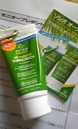 モニプラさんで、株式会社アルファネットさんの案件に参加させて頂きました今回モニターさせて頂きましたのは… ソレオ オーガニックス 日焼け止めクリーム ミニサイズ(40g) 2,310円(税込)嬉しい現品モニターです全成分は…パッと見ただけでも、害のなさそうな素晴らしい成分配合ですっ恐れ入りまし… 2010/06/10