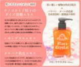 トロっとしたローションタイプのフローラクリスタルは、するすると広がりメイクや余分な皮脂を優しく取り除きます。天然香料にラベンダー油を配合。優しい香りが心をときほぐし洗い流した後もしっとり、潤いを守るクレンジングです。
