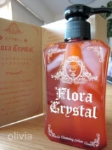 トロっとしたローションタイプのフローラクリスタルは、するすると広がりメイクや余分な皮脂を優しく取り除きます。