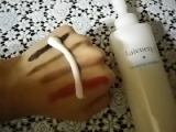 手や顔をぬらさずに、適量(500円玉程度)を手にとりマッサージの要領で充分になじませます。