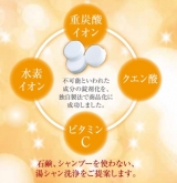 重炭酸タブレットで洗髪すると重炭酸イオン効果で髪に付着したシャンプーでは取れなかった汚れを除去しトリートメント効果を高めます。