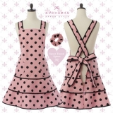 ピンク&ブラック水玉のティアードエプロンはエプロンスタイルのオリジナル生地を使用!