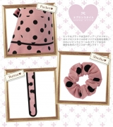 エプロンの本体と同じピンク×ブラック水玉シュシュがセットされています。