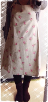 トラッドなタータンチェックに薔薇柄。大人のかわいいエプロンです。