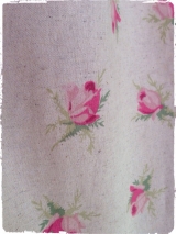 綿麻特有の生成り地に、ピンクローズのつぼみが可憐な雰囲気。