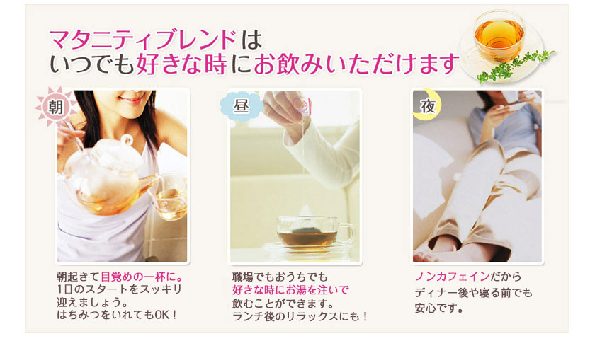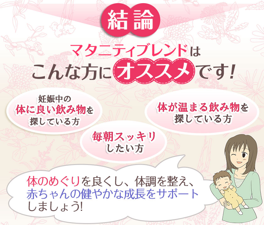オーガニックハーブティ「マタニティブレンド」を飲み続けて2週間毎日1杯~2杯を飲み続けました■初めて飲んだ時最初は、薄めに作ったせいかもっと酸味がほしいなぁと思いましたが、200ccほどで濃く作ると酸味も感じて美味しく感じました■好みの飲み方時期的に暑くなってきたので、濃く作って常温で飲むのが飲みやすかったです本当は、アイスにしたいけど体を冷やすので極力常温でたまに、ミルクを入れると飽きもこず、飲み続けることができました■体の変化2週間経ちましたが、思うような変化はまだ感じられません味は、飲みやすくて美味しいので飲み続けてみ...