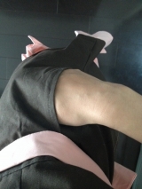 ピンタックデザインは首の後ろはボタン留。着脱もラクチンですよ!