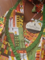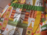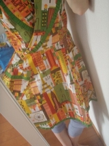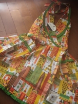 おしゃれな建物や街の様子が一枚のエプロンにギュッと詰まりました♪さわやかなグリーンと温かみのある暖色がうまくまとまっています。