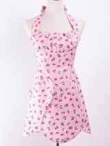 ピンク生地にチェリーがたくさんプリントされていて、 とっても可愛いく&華やかなデザイン☆胸当て付きエプロンです♪