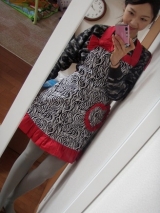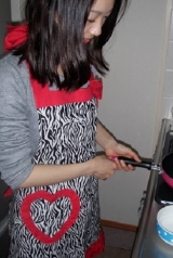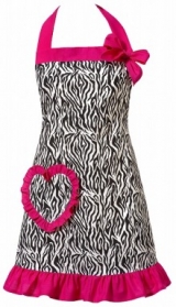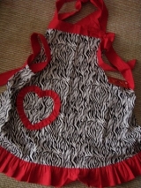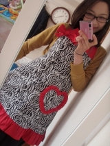 ブラック×ホワイトのゼブラ柄に鮮やかなレッドが引き立つ とってもセクシーで可愛い胸当て付きエプロンです♪