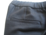 ウエストゴムのルーズ感をなくすために、フェイクポケットと前立てできちんと感を強調。
