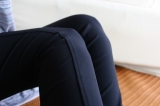 サイドラインの切替を前によせ細脚効果をもたせ、ヒップのOラインカットで女性らしいラインと、ヒップポケットがラインをカバーします。