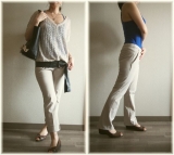 脚が凄く太いのであんまりパンツを履かないんです履いてもチュニック系の物と合わせたりして、太もも目立たないようなコーデになっちゃう今回やせ魅せパンツって事で凄く楽しみにしてたのamorosoの大人の絶品シルエット アンクルフレアーパンツ うーん上品なパンツ!そうしてシルエットが綺麗なの膝下から… 2014/07/05