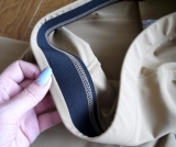 サイドラインの切替を前によせ細脚効果をもたせ、ヒップのOラインカットで女性らしいラインと、ヒップポケットがラインをカバーします。