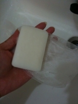 ぬるま湯で石鹸をよく泡立て、その泡でつつみこむように洗顔してください。泡立てにはソープネットなどをお使いになると便利です。