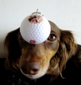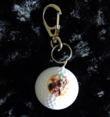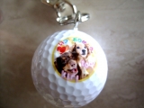 画像とメッセージをゴルフボールにプリントしたオリジナルのゴルフボール・キーホルダーです。
