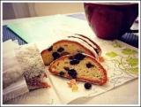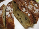 シュタインメッツ フルーツブレッドイタリアのパネトーネのようなふわっとしたパンですでも、ずっしりとした重みがありますHPによると発酵種を使用し、バターやタマゴ、ハチミツを加えた生地に、ラム酒とキルシュに漬けたドライフルーツ(レーズンシトロンオレンジ)を混ぜ込んで、表面にマカロンとポップシュ… 2012/11/24