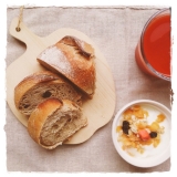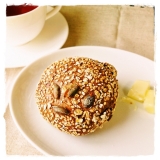 | ミューズリーボーラ(2個)小麦全粒粉入りの生地に、レーズン、かぼちゃの種、オートミール、白ゴマ、くるみを混ぜ込んだ、風味豊かな食事用パン。レーズンの甘みと穀物の香ばしさ、かぼちゃの種の食感が楽しめる、あとをひく素朴なおいしさです。コペンハーゲンにあるアンデルセンチボリ店の人気商品です。 | |