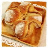 シンプルな朝食を楽しむパンセット 商品名通り、朝にピッタリなパンがいろいろ入った冷凍便 1個づづ個包装になってるのもイイネ 上段真ん中のデッカイパンから時計まわり 2016/05/04
