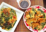 今日の夕飯みきママの野菜チヂミ★右は、チーズを入れてみたチヂミ※あと、ジャーマンポテト、トマトと卵のオイスターソース炒めみきママのチヂミ美味しいー(^◯^)生地に味が付いているので、そのままでも美味しいそんでもって、カニカマがいい味出してますうっとりご馳走様でした 2016/07/12