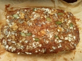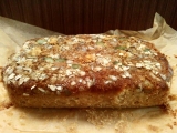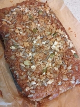 【デンマークの朝をケーキにしたらきっとこんな感じ】甘さ控えめのバナナケーキに、デンマーク産のオーガニックミューズリーをたっぷり載せました。くるみ・かぼちゃの種・ひまわりの種・オートミールなど栄養価の高い穀物の味わい豊かなケーキです。爽やかな夏の朝食の真ん中に、グッドモーニングケーキをどうぞ。