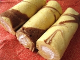 節分に食べた 恵方巻きロールです 1週間前くらいに 練習で 作ったのですが、、、おにのパンツをイメージして トラ柄 にしたら トラ柄に見えなくて 再トライ 細巻きにして 恵方巻きのように ひとり1本ずつ 食べれるようにしようと いつも 1枚で焼くロールケーキ生地を 2枚にわけて 薄く… 2013/02/05