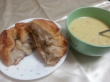 週末の朝ごはんは、いつもよりしっかりと 普段はトーストしたパンと、野菜スープのみですが… 週末は、大好きなANDERSENの、クラムチャウダーにブールブールで、 ちょっぴり贅沢な朝ごはん シュタインメッツ粉を使用した生地に、バターを包み込んで焼き上げた、ブールブールは、 電子レンジで温めるだけ… 2013/02/26