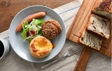 【デンマークの朝はシンプルなワンプレートではじまります。】デンマークでは洋菓子にも使われる甘いマジパン。デニッシュ生地にたっぷり巻き込んで、朝食にぴったりのデニッシュブレッドをつくりました。デンマークチーズたっぷりのチーズロールと、穀物の味わい豊かなグローブスネイルをお皿にのせて、朝食を楽しみましょう。